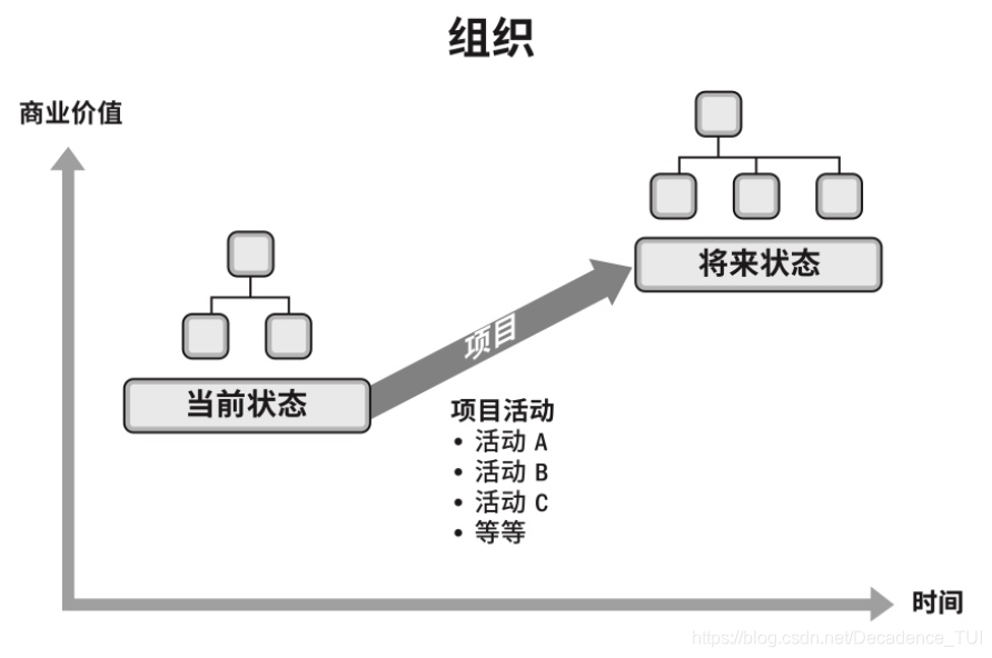 项目驱动变更 :从商业角度来看,项目旨在推动组织从一个状态转到另一个状态,从而达成特定目标。
