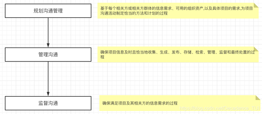 监督沟通过程可能引发重新开展规划沟通管理和/或管理沟通过程。这种重复体现了项目沟通管理各过程的持续性质对某些特定信息的沟通,如问题或关键绩效指标(如实际进度、成本和质量绩效与计划要求的比较结果),可能立即引发修正措施,而对其他信息的沟通则不会。