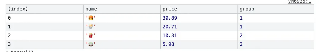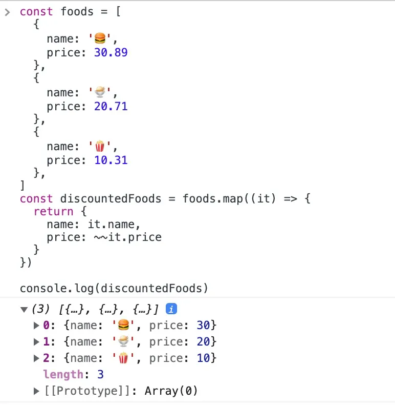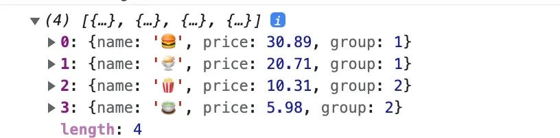 console.log(names); // [ '🍔', '🍨', '🍵' ]