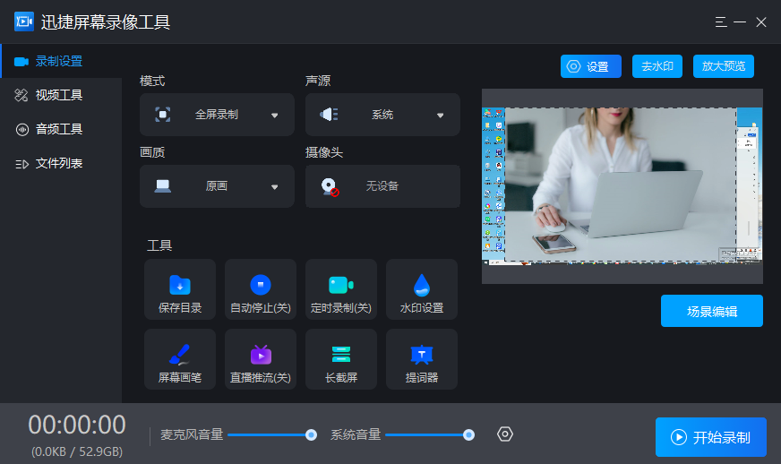 • 内置屏幕截图、打开麦克风、调节音量等功能可供使用,结束录制即可查看。