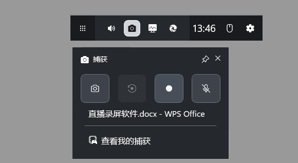 • 在弹出窗口点击“捕获”图标,随后按下“Windows + Alt + R”开始录制。