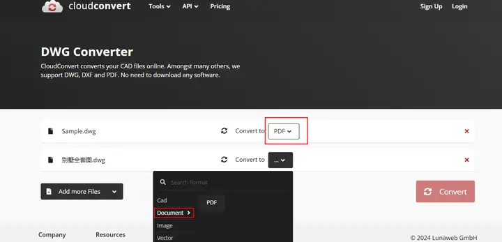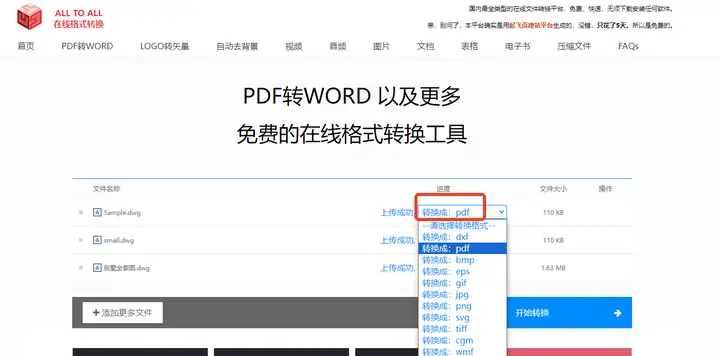 一个界面采用全英文设计的在线文件转换器,但是操作起来没啥难度,适用于音频、视频、文档、电子书、CAD、图像等多种格式类型,CAD转PDF也不在话下。