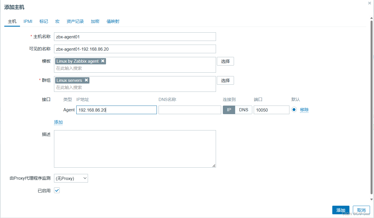4) 添加 zabbix 客户端主机(192.168.86.20)
