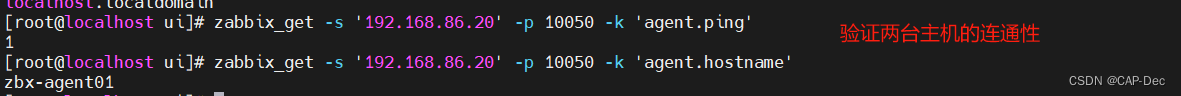 zabbix_get -s '192.168.86.20' -p 10050 -k 'agent.ping'