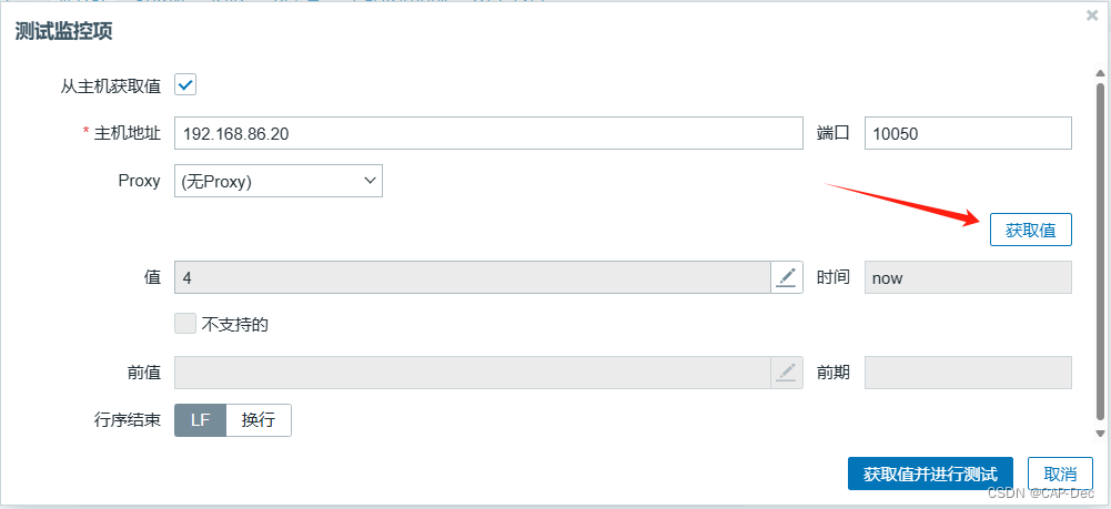 点击上方菜单栏【监控项】,点击【创建监控项】