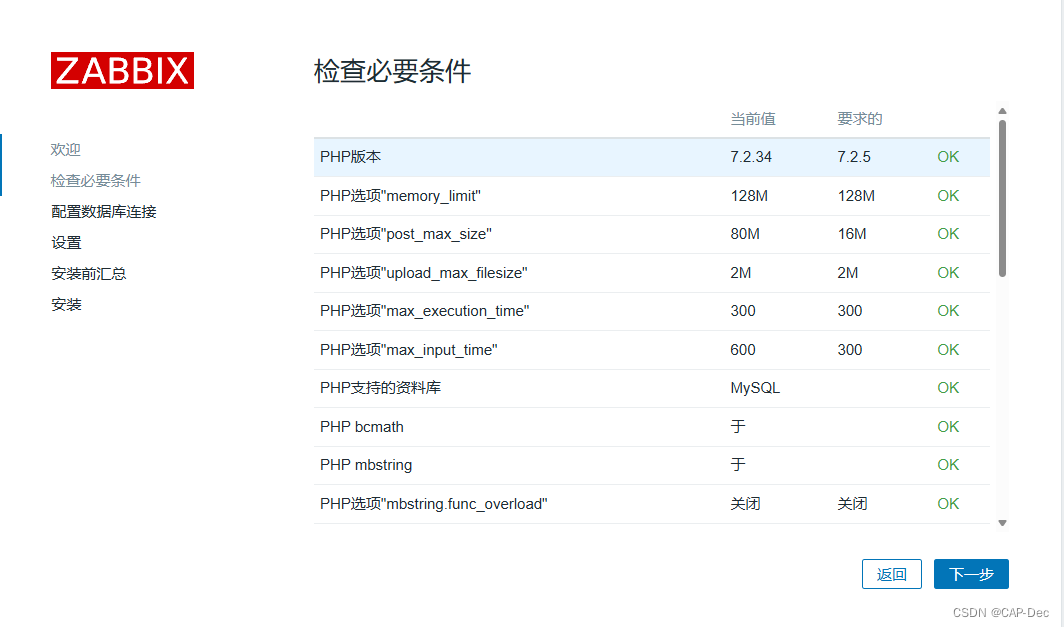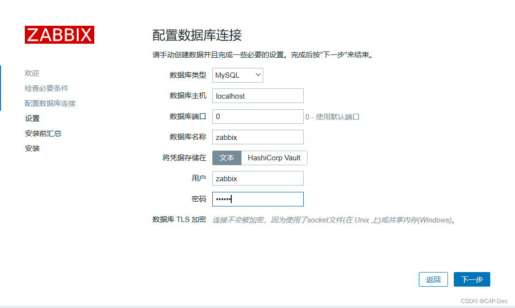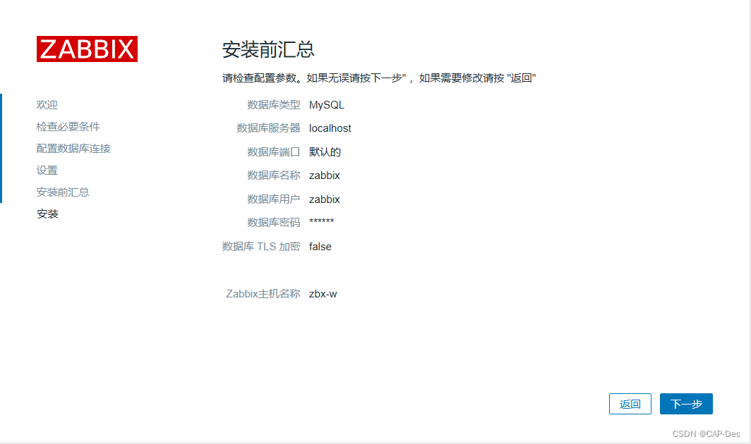 【Zabbix主机名称】输入 Zabbix-监控;【默认时区】选择 Asia/Shanghai,点击下一步