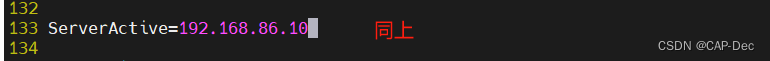 ServerActive=192.168.86.10 #133行,指定 zabbix 服务端的 IP 地址