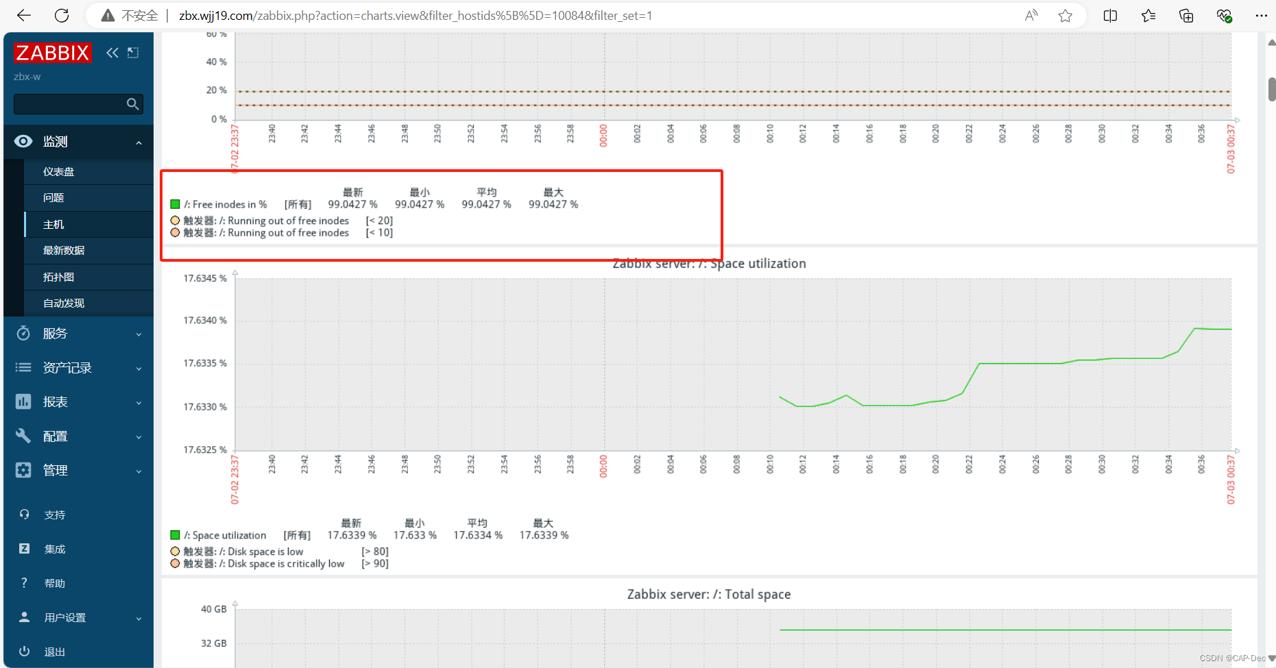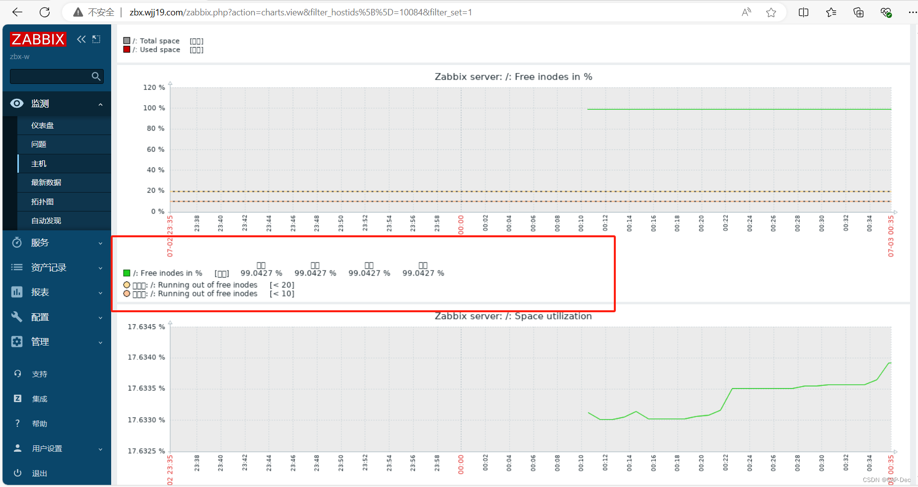 此时就点击【监测】中的【主机】,点击你关联主机的【图形】,即可查看到相关的监控项指标
