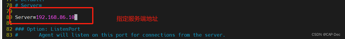 Server=192.168.86.10 #80行,指定 zabbix 服务端的 IP 地址