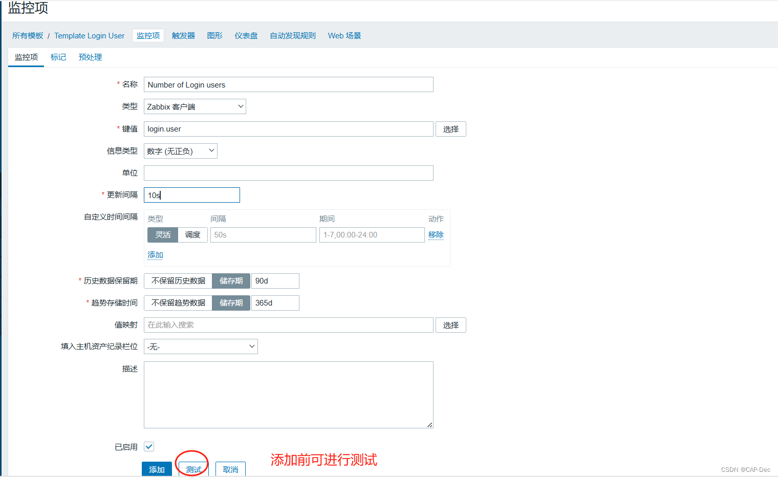 【键值】设置成 login.user #键值必须要与自定义的监控项配置文件中设置的保持一致