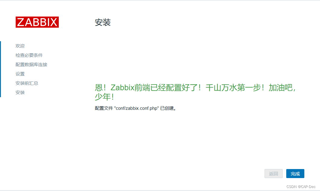 安装完成后,默认的登录账号和密码为:Admin/zabbix