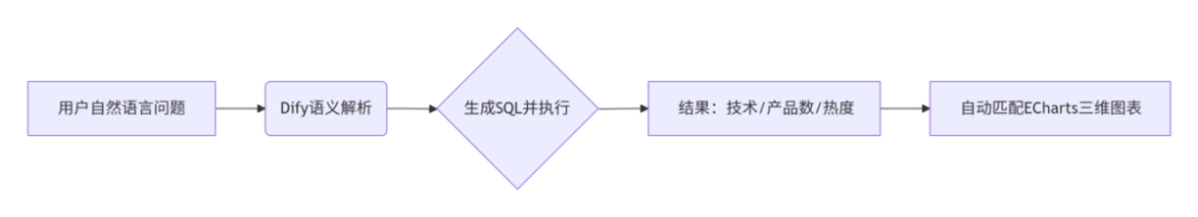 技术案例:人形机器人赛道三维分析图(优必选VS宇树)Dify SQL插件通过自然语言理解(NLU)将用户问题(如“人形机器人技术路线差异?”)转化为SQL查询,再执行查询、聚合数据,最终生成交互式三维图谱。全程无需手动写SQL或代码,只需4分钟配置。