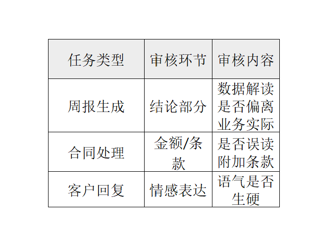人类:设定目标、审核关键结果(如合同金额、战略方向)
