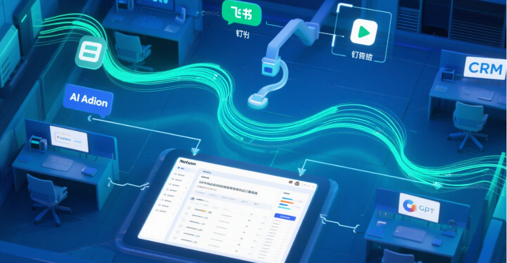传统流程效率瓶颈明显:人工需耗时收集飞书日志、钉钉审批单→Excel手动整合→文字撰写(平均耗时90分钟/周),信息滞后且易出错。AI Agent流程重构实现质变:首先自动聚合飞书/钉钉/CRM等多平台数据,同步至Notion生成结构化日志;再由GPT提炼核心成果与风险点,套用企业模板输出周报(全程仅需5分钟)。某电商公司部署该方案后,200名销售的周报撰写时间减少67%,管理层决策响应速度提升40%。