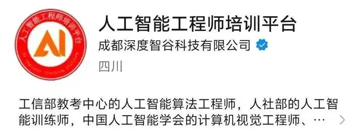 官方服务号,专业的人工智能工程师考证平台,包括工信部教考中心的人工智能算法工程师,人社部的人工智能训练师,中国人工智能学会的计算机视觉工程师、自然语言处理工程师的课程培训,以及证书报名和考试服务。