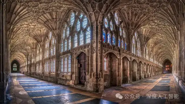 输出示例:“垂直式建筑的特点在于其巨大的窗户、精细的窗花格以及强调垂直线条的立面设计,例如英国格洛斯特大教堂的回廊……”