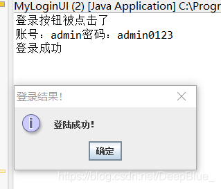 JOptionPane.showMessageDialog(null, "登陆成功!", "登录结果!", JOptionPane.INFORMATION_MESSAGE);