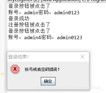 JOptionPane.showMessageDialog(null, "账号或者密码错误!", "登录结果!", JOptionPane.ERROR_MESSAGE);