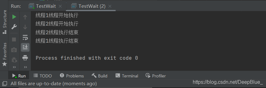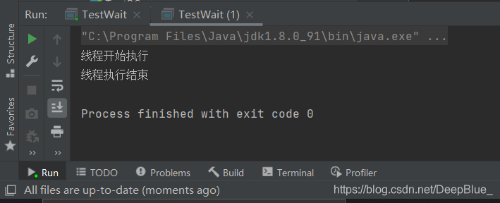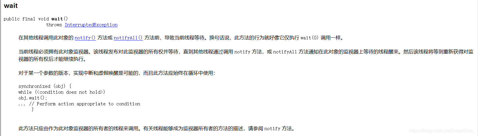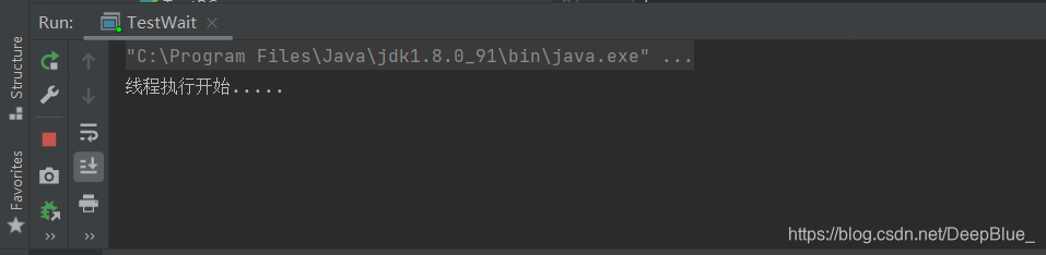可以看出这个线程调用wait()方法之后就会进入等待状态,一直在运行,且不会中断。除非让这个线程接受唤醒操作或者中断操作。