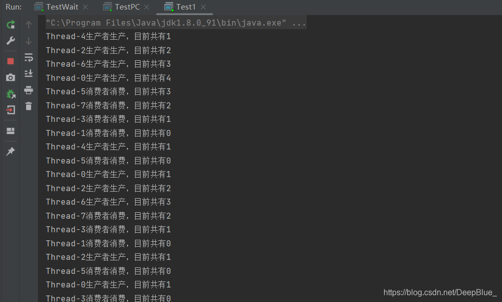 这个例子当中,我们会写四个类,生产者类,消费者类,商品类,测试类