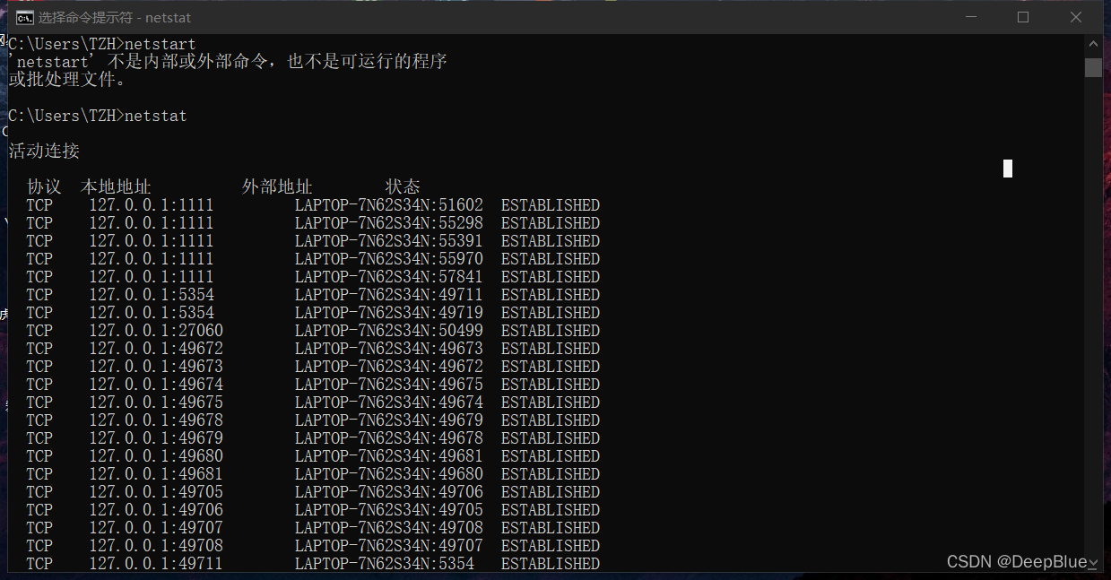在自己的计算机中,有一个本机回环,就比如localhost,默认为127.0.0.1。一般在127.0.0.1后面会跟上端口。在本地计算机中,会有多个进程。计算机就会给这些进程分配端口号。我们可以通过cmd命令,来查看,我们计算机中有哪些进程在占用哪些端口号。netstat这个命令