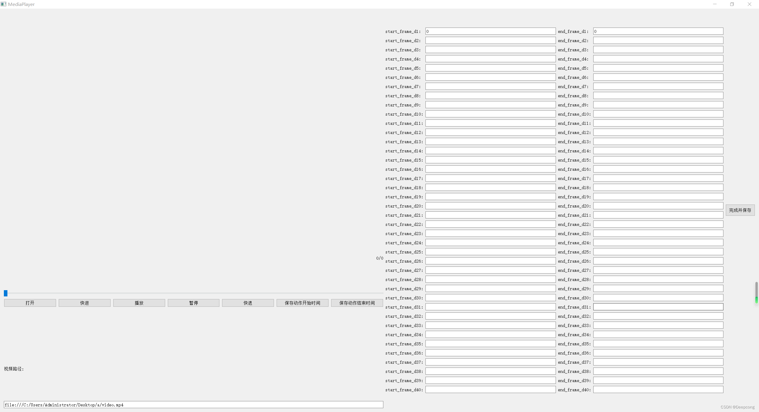 theme: pyqt5实现动作起始帧和结束帧的定位,将定位到的帧数保存json文件
