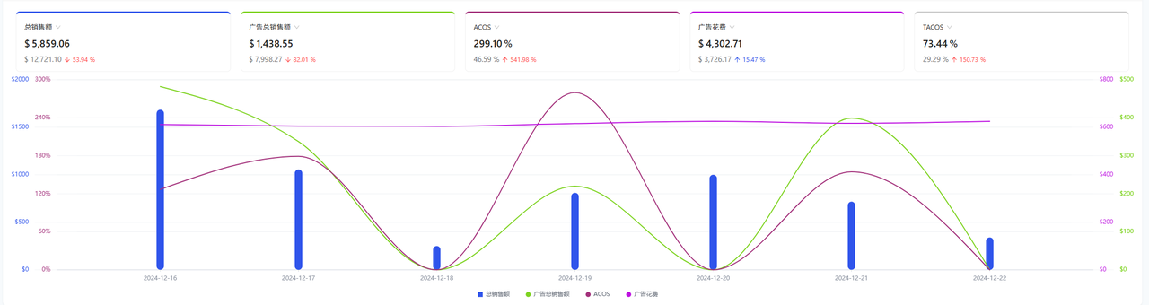 ACOS 299.1%,Tacos 73.44%,利润空间被严重压缩, |