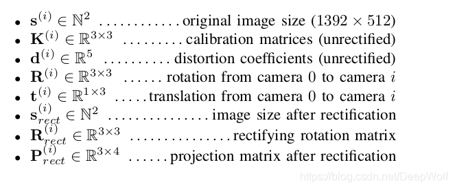 每天的校准参数以行为主顺序存储在calib_cam_to_cam.txt中,使用如下表示法: