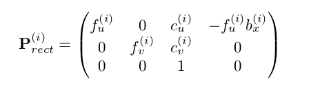 表示相对于参考相机 0 的基线. 为了将参考相机坐标系中的三维点 x 投影到第 i 个图像平面上的点 y, 参考相机的校准旋转矩阵