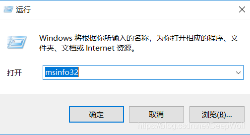 2)输入“ msinfo32 ” 如下所示: