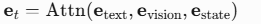 其中evision∈Rdmodel通过ViT-22B投影,estate经仿射变换W∈Rdmodel×dstate对齐,实现与语言嵌入的无缝融合 -