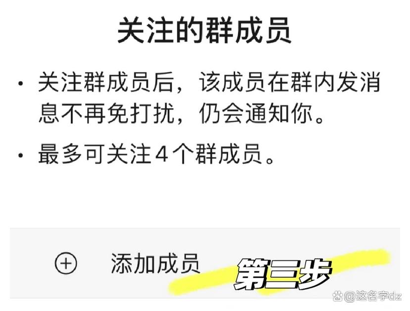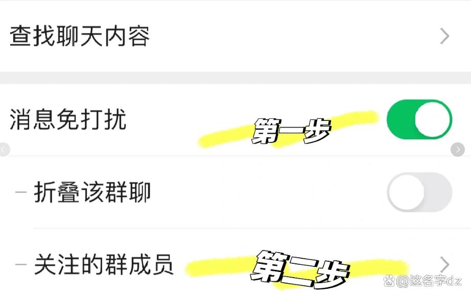 1、选择“消息免打扰”,然后选择“关注的群成员”