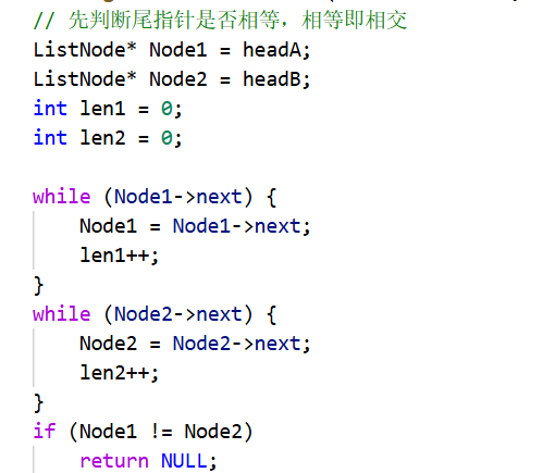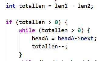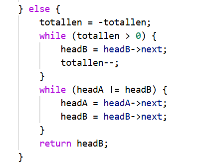 当totallen<0时,则相反,只需要将totallen取相反数,headA修改为headB就行(此时headB为长链表)