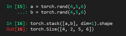 如果我们令 c = torch.stack([a,b], dim=1) 则: