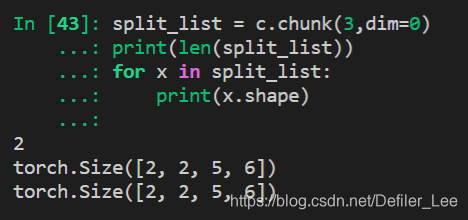 split参数,1表示切分分段每一个的长度,dim是切分的维度