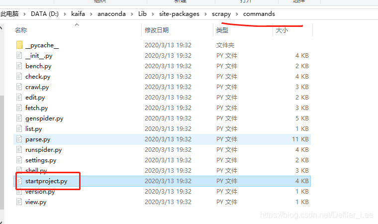 在 scrapy/commands文件夹中打开startproject文件