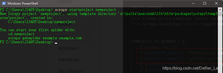 例如 我们 scrapy startproject newproject