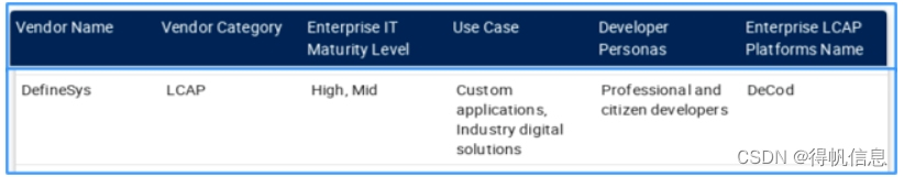 得帆信息作为国内领先的低代码PaaS平台厂商,在500强企业中具有极高占有率,稳居低代码行业领导地位,在本次报告中入选为低代码和无代码独立厂商的优秀代表,名列榜首。