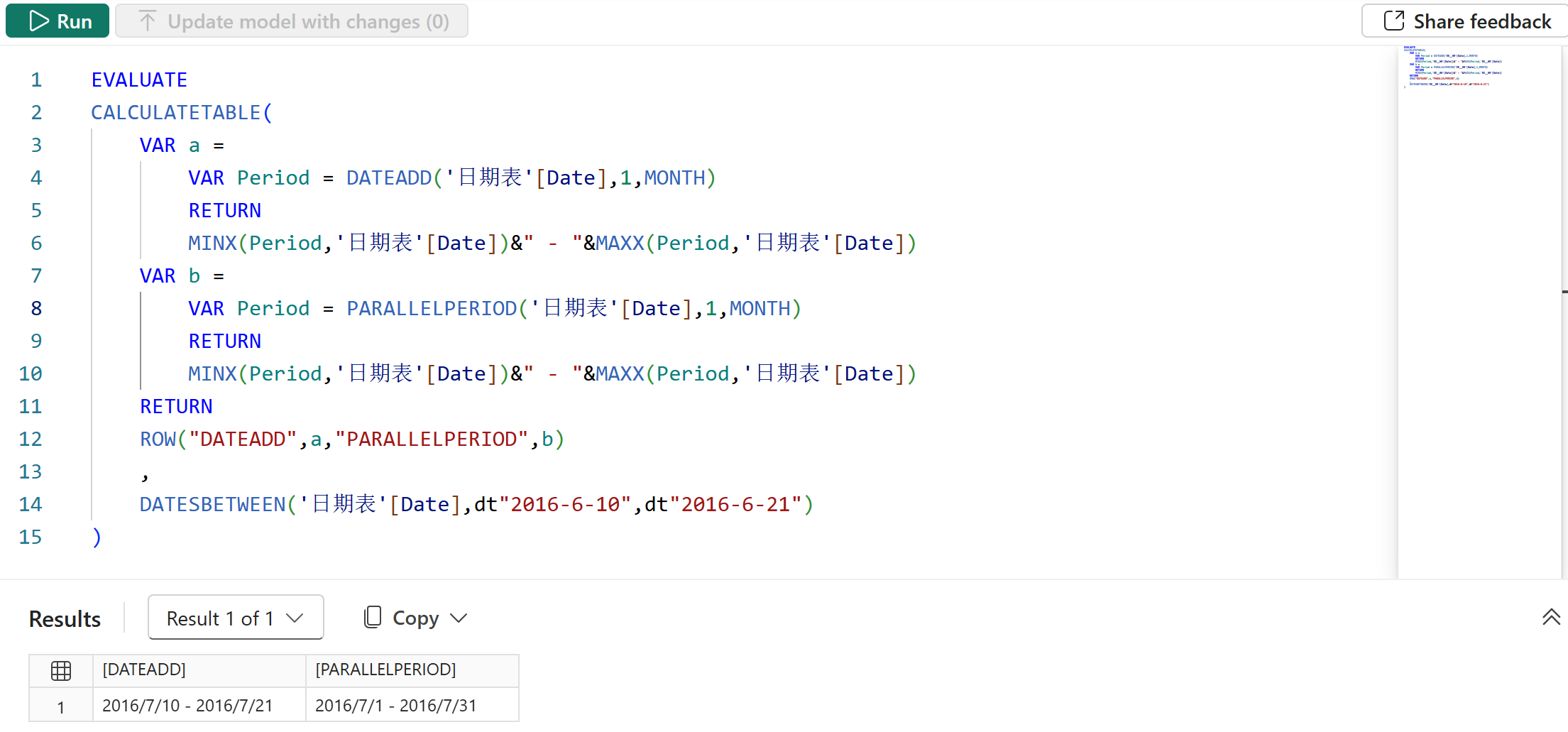2、如果用代码来表示的话,PARALLELPERIOD 函数的等价写法如下: