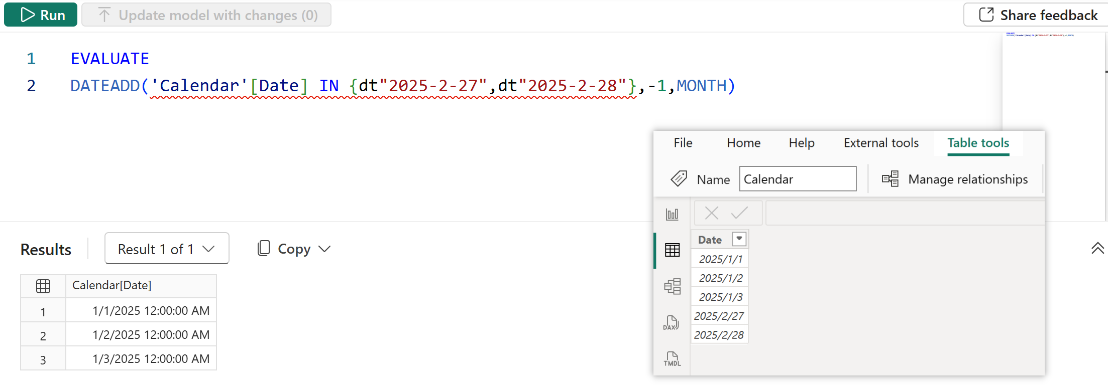 3、除了直接引用日期列,日期参数还可以接受具有单个日期列的表,以及定义单个日期列表的布尔表达式,如下图所示: