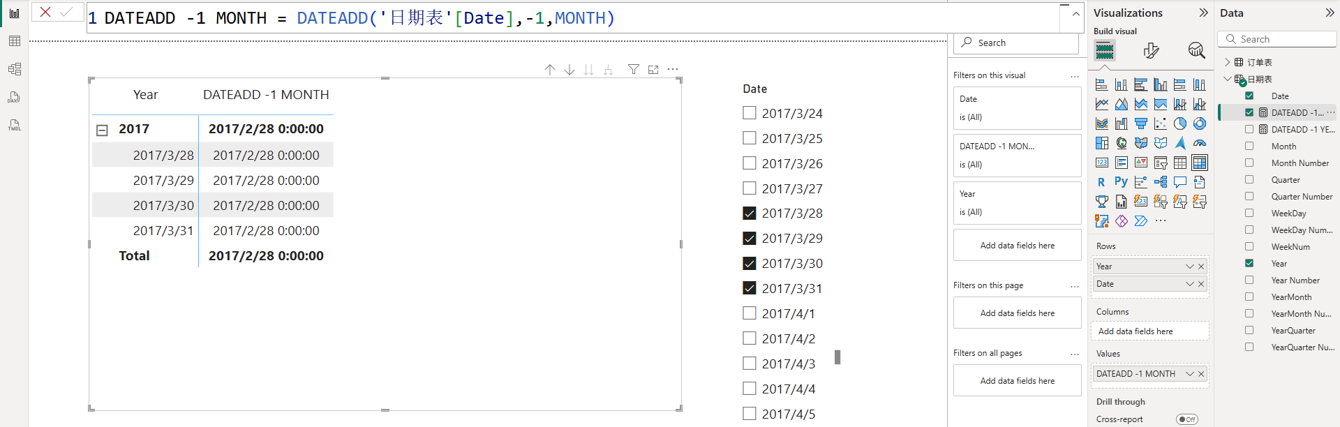PowerBI时间智能函数DATEADD与PARALLELPERIOD介绍