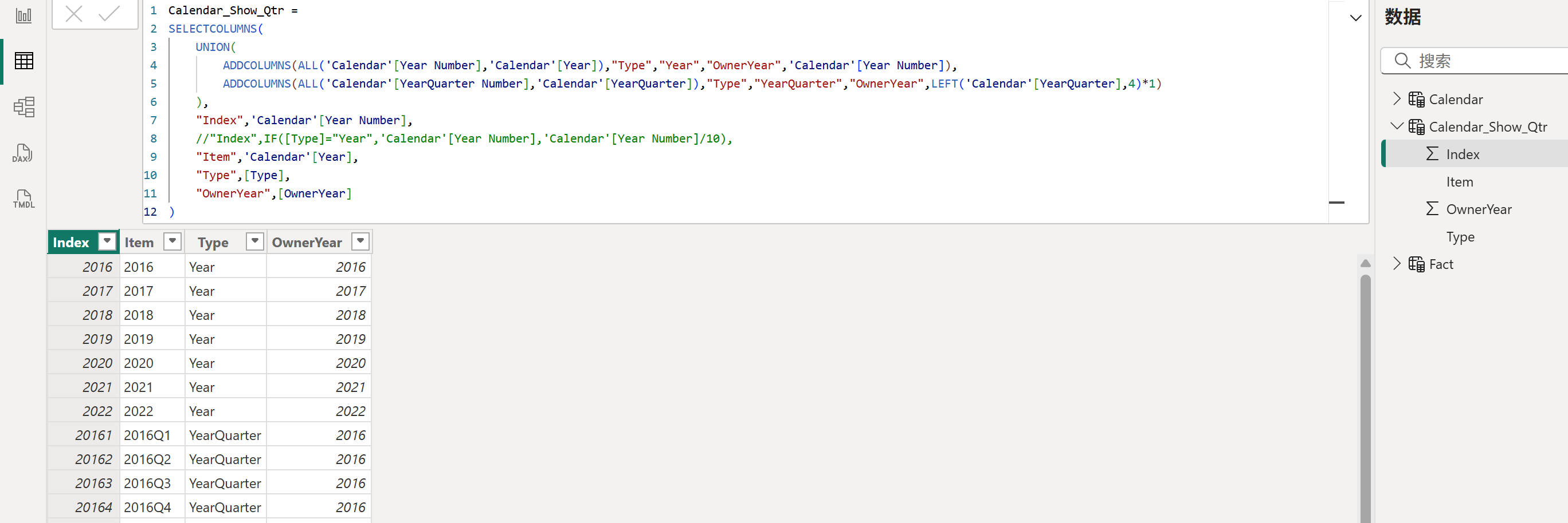 最后再对应的更改一下度量值里的季度部分的索引逻辑即可,如下图所示: