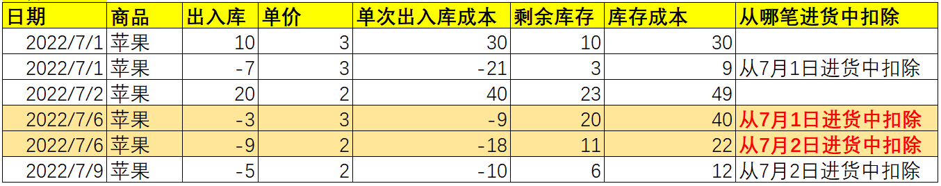 假设总出库数量为:100,那么本案例的计算思路如下表所示: