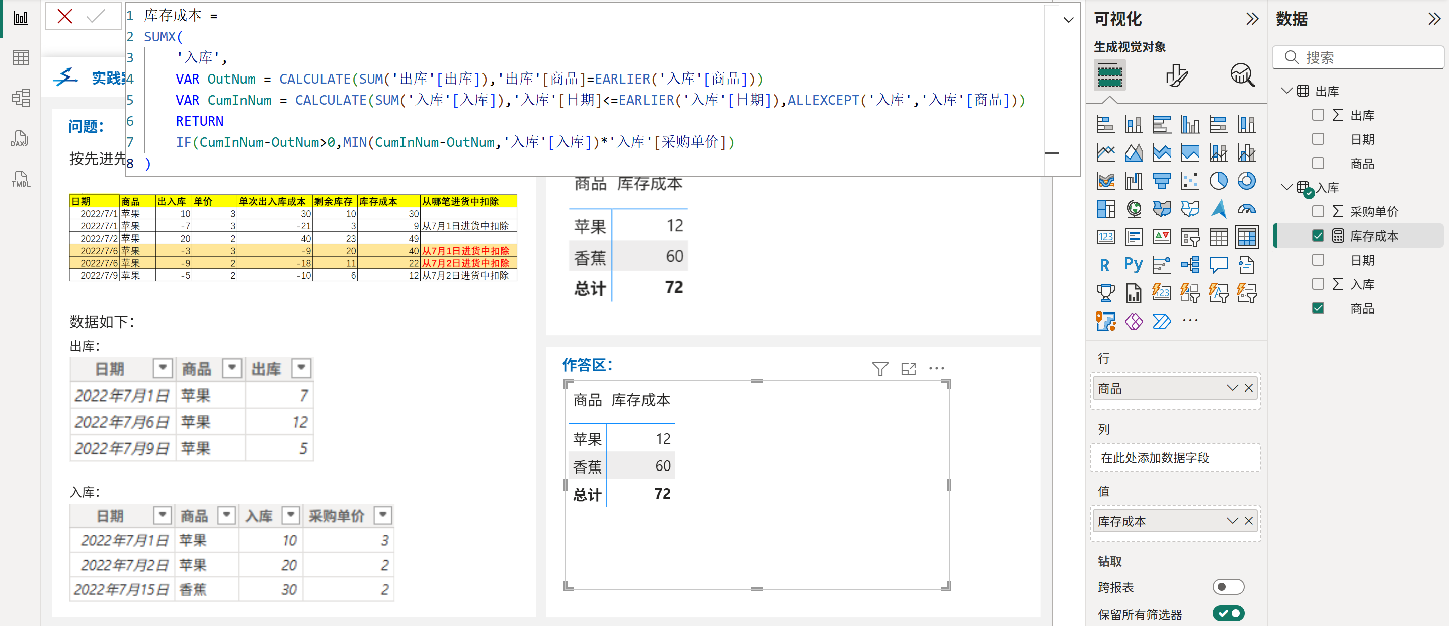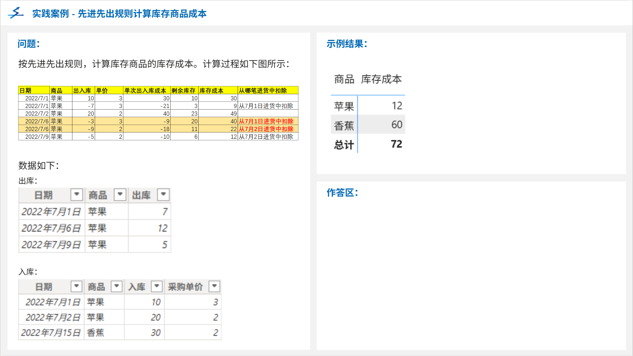 先进先出(FIFO)是企业管理中广泛应用的库存计价方法,尤其在财务核算和成本分析中扮演着重要角色。本篇文章将介绍如何在PowerBI中按先进先出规则计算库存商品的库存成本。