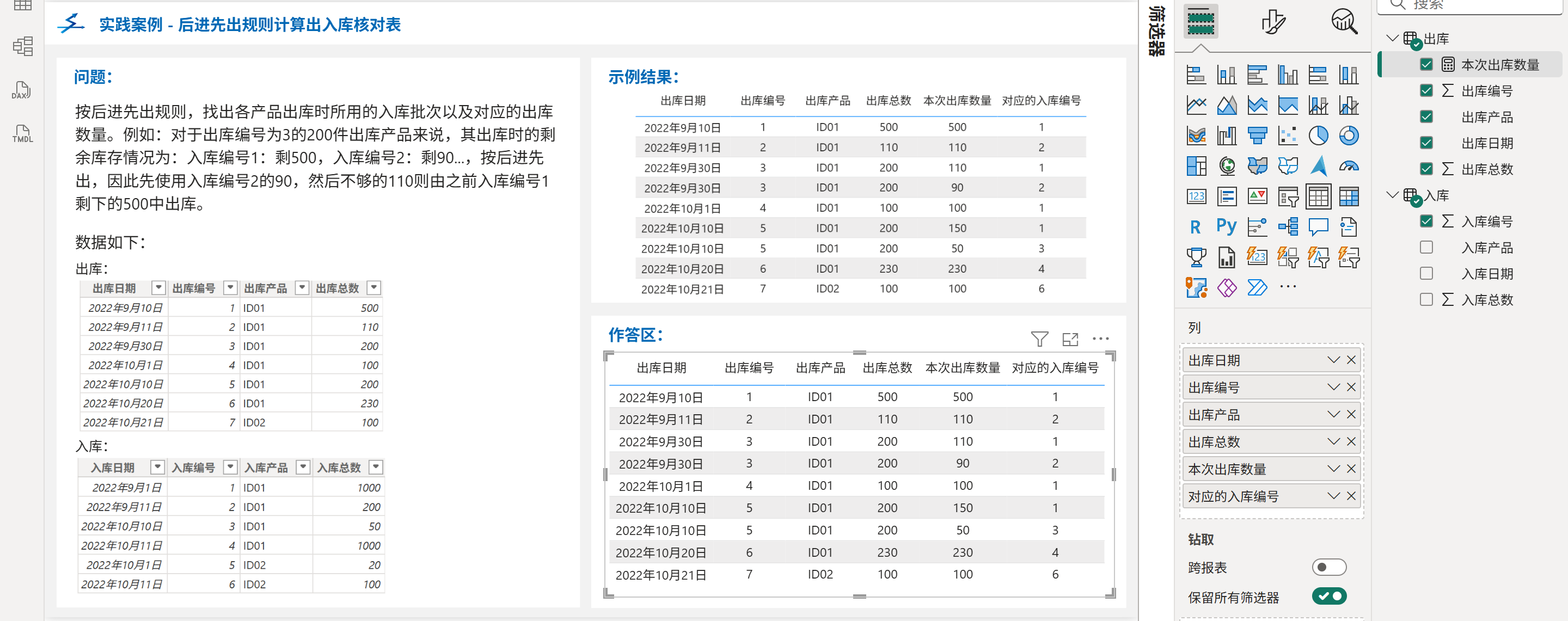 后进先出(LIFO)是库存管理中常用的计价方法之一,特别适用于物价波动较大的环境。本篇文章将介绍如何在PowerBI中实现基于后进先出规则的出入库核对表计算,帮助财务和供应链管理人员准确核算库存成本。