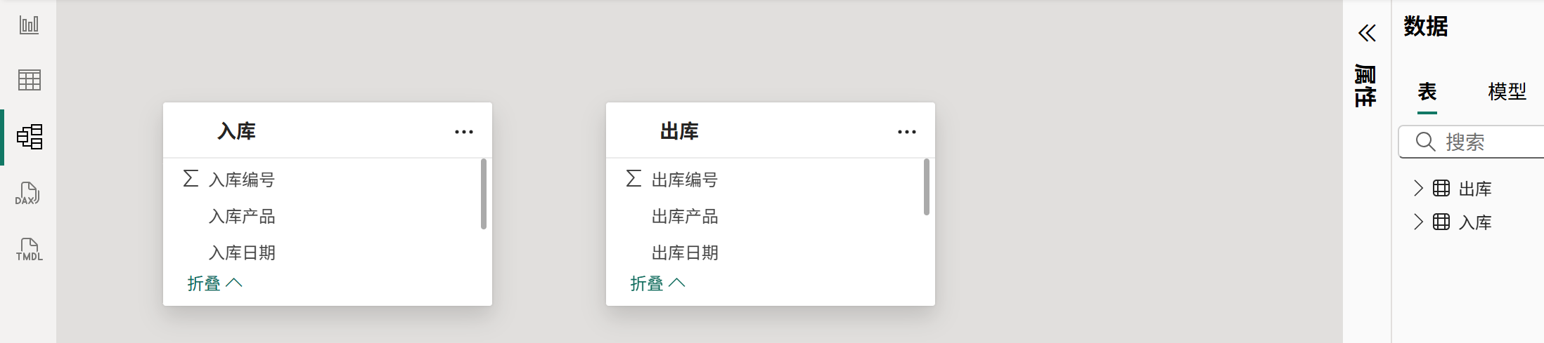 然后创建一个矩阵,并将出库表中的所有字段以及入库表的入库编号字段一起作为行标签,再将上面的度量值放入矩阵的值字段即可,如下图所示: