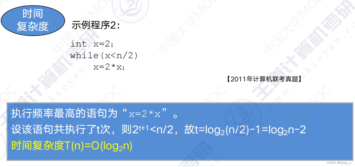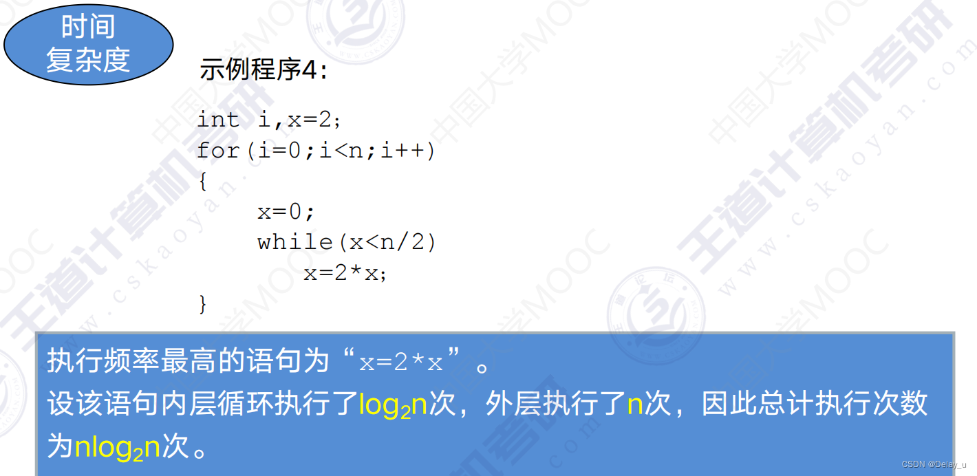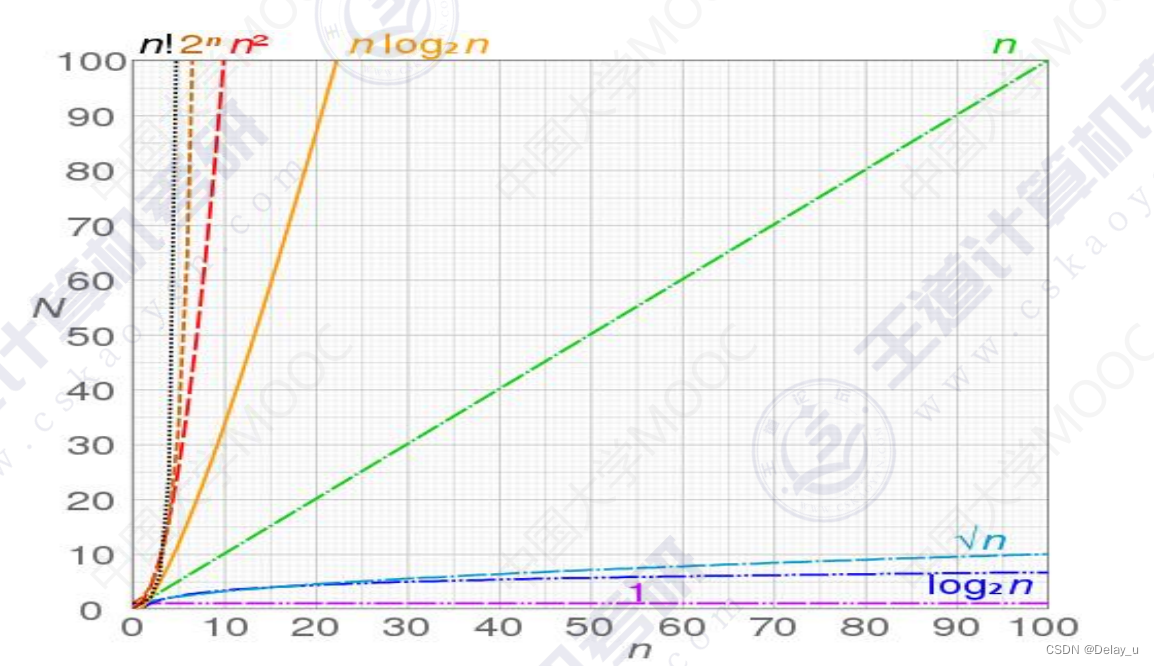 常见的时间复杂度: Ο(1)<Ο(log2n)<Ο(n)<Ο(nlog2n)<Ο(n^2)<Ο(n^3)<Ο(2n) <Ο(n!) 最高阶数越小,说明算法的时间性能越好。