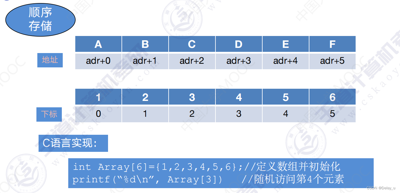 顺序存储:数组就是典型的顺序存储结构,每一个元素都按顺序挨着,