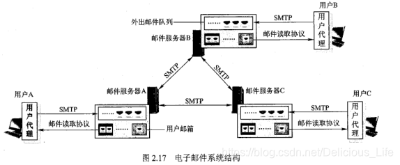电子邮件系统主要包括邮件服务器、简单邮件传输协议(SMTP)、用户代理和邮件读取协议