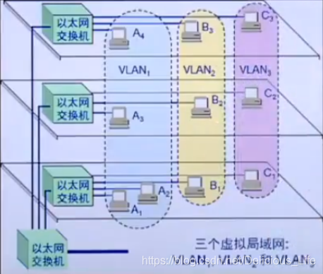 1.一种基于交换机(支持VLAN功能)的逻辑分割广播域的局域网应用形式。